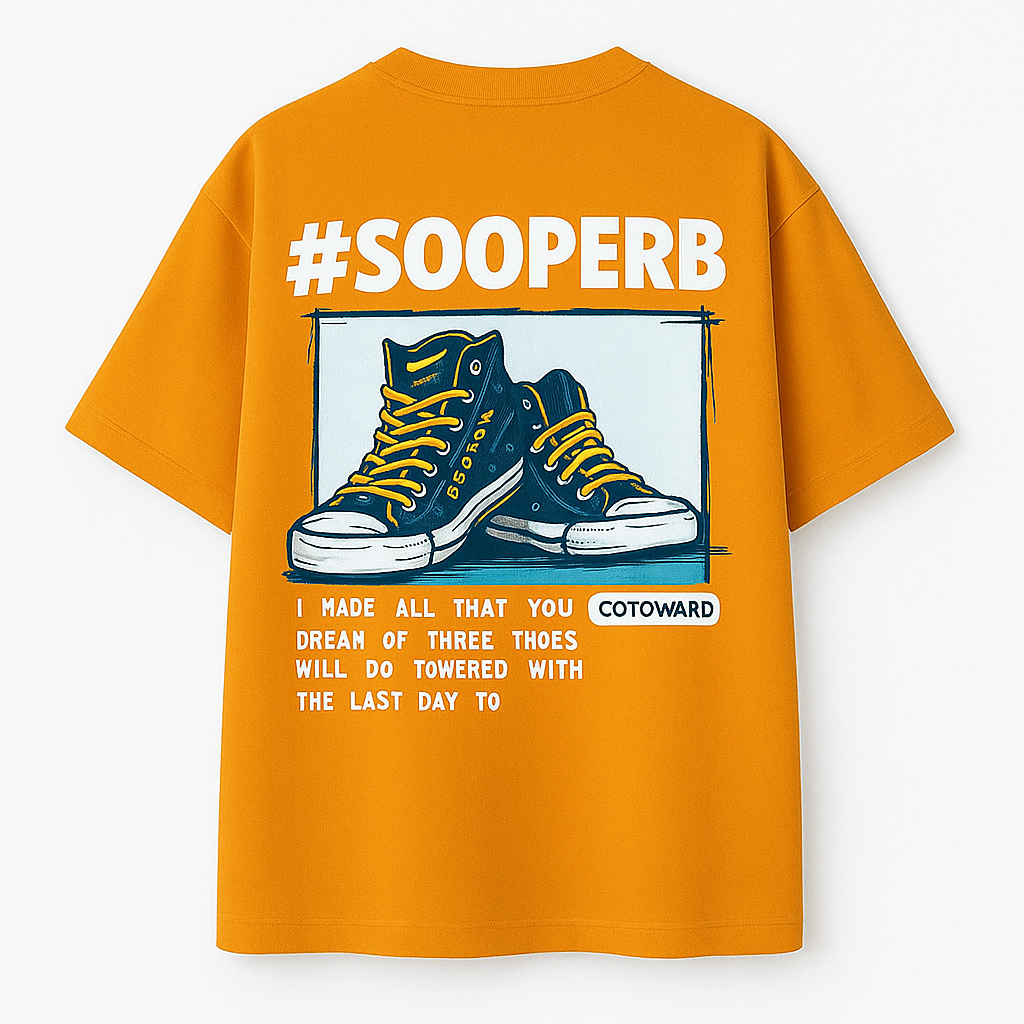 The eye-catching #SOOPERB print on the front and bold sneaker-inspired graphic design on the back give this tee a unique and trendy look, making it a must-have for fashion lovers who want to stand out. With its oversized fit and half sleeves, it provides a relaxed yet stylish vibe that is ideal for both casual and party wear.